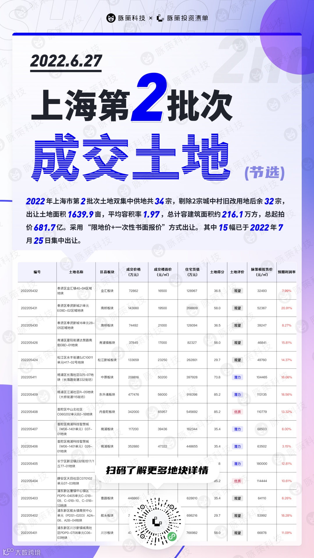 根据第一天土拍的情况,投资清单数据团队进行了统一的利润率测算。