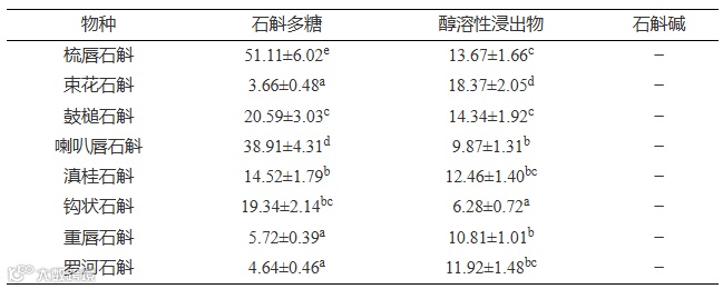 表 4 8种石斛属植物药效成分含量(%)