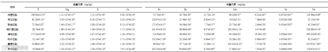 表 3 8种石斛属植物中的矿物元素组成及含量