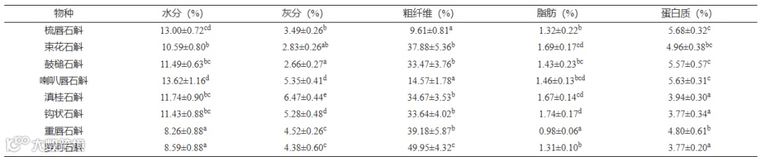 表 2 8种石斛属植物中的一般营养成分组成及含量