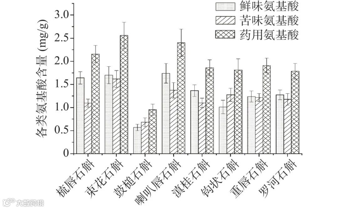 图 1 8种石斛属植物各类氨基酸含量