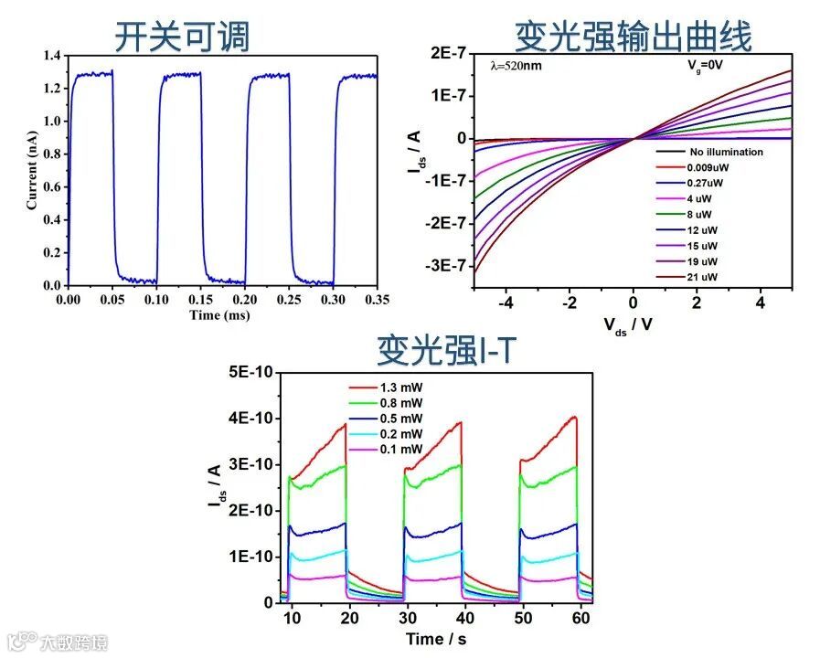 光响应率/变波长光电流谱 (氙灯,功率10-100mw/cm2) |