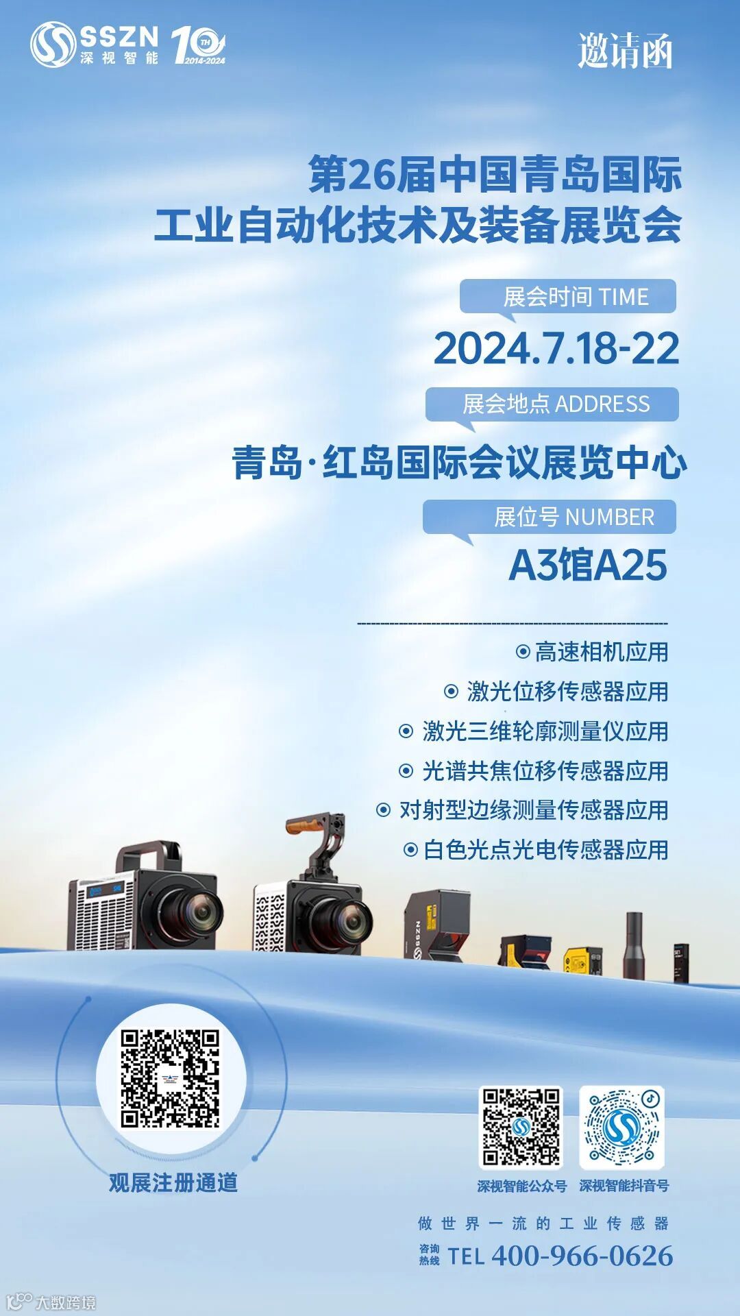 欢迎各位行业伙伴莅临参观深视展位A3馆-A25,一同感受国产高端传感器和高速相机的魅力,我们不见不散!