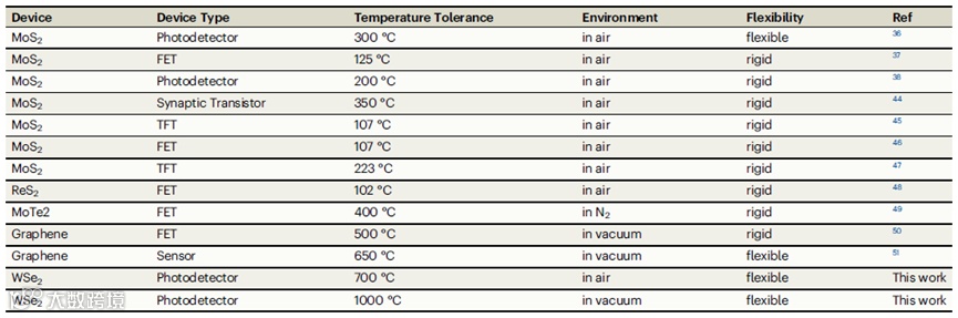 在空气和真空环境下所能承受的温度远高于当前二维材料器件(表1),扩大了二维材料的工作温度范围,使二维材料良好的电学性能应用于高温环境。