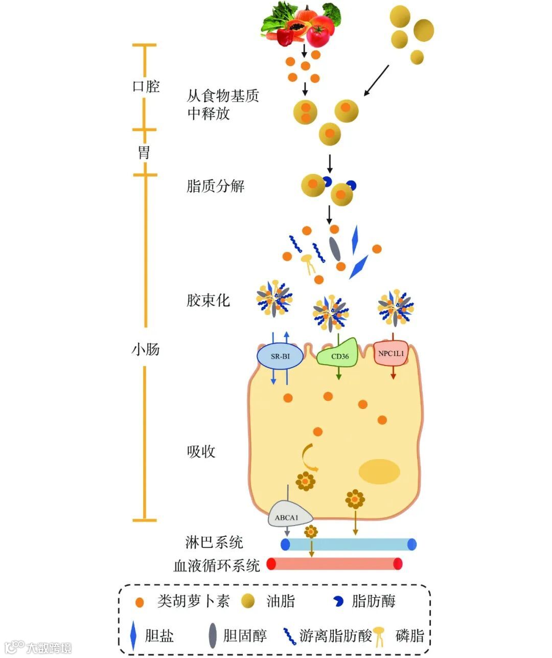 Figure 1. Carotenoid digestion and absorption mechanism diagram