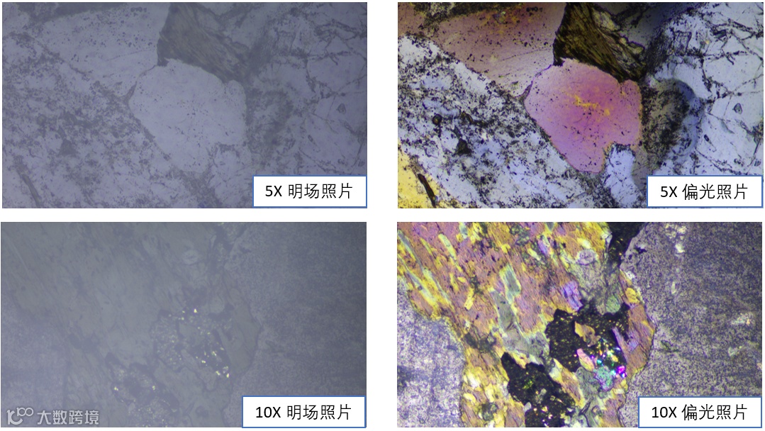 图8. 矿物切片在合适检偏角度下的图片,呈现出绚丽的颜色