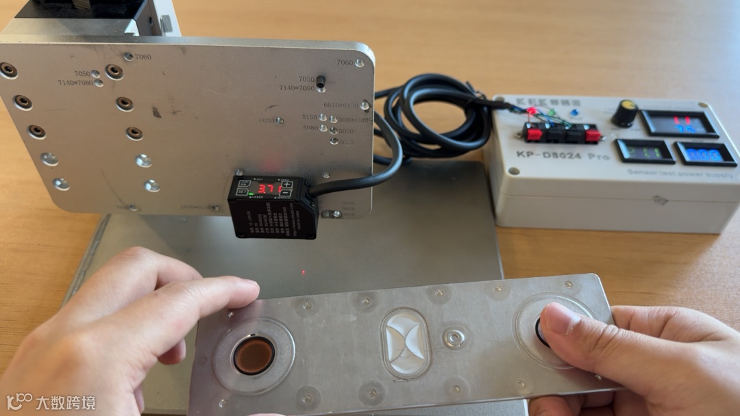 测试准备:方形电池顶盖,深视智能激光位移传感器SD22,24V电源。