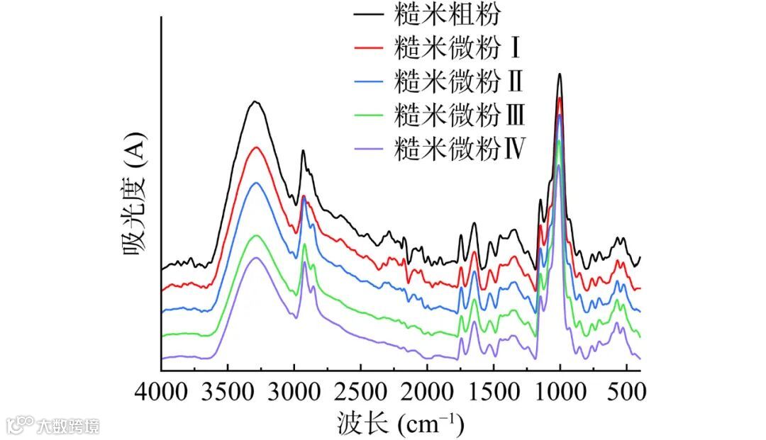 图 5 超微粉碎前后发芽-焙烤糙米粉的FTIR光谱图