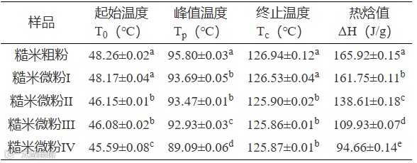 表 9 超微粉碎前后发芽-焙烤糙米粉的热特性
