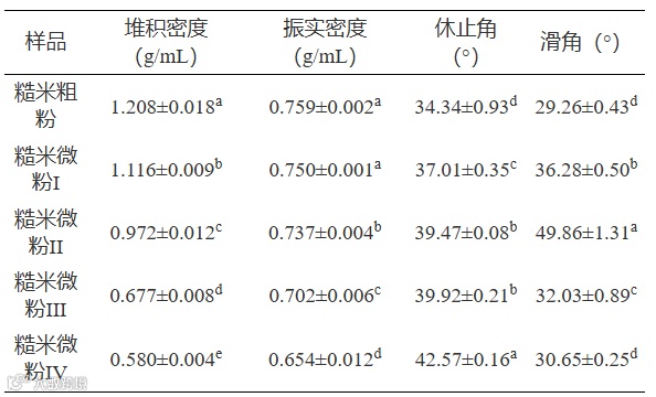 表 4 超微粉碎前后发芽-焙烤糙米粉的流动特性