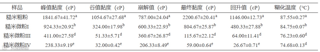 表 7 超微粉碎前后发芽-焙烤糙米粉的糊化特性