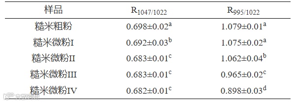 2.9 超微粉碎对发芽-焙烤糙米粉短程有序性的影响