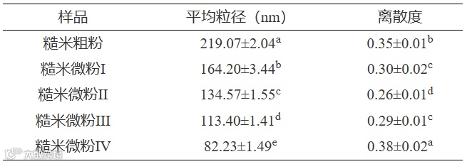 表 3 发芽-焙烤糙米粉粒径的相关参数