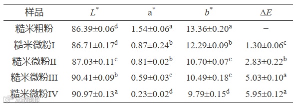 2.4 超微粉碎对发芽-焙烤糙米粉色泽的影响