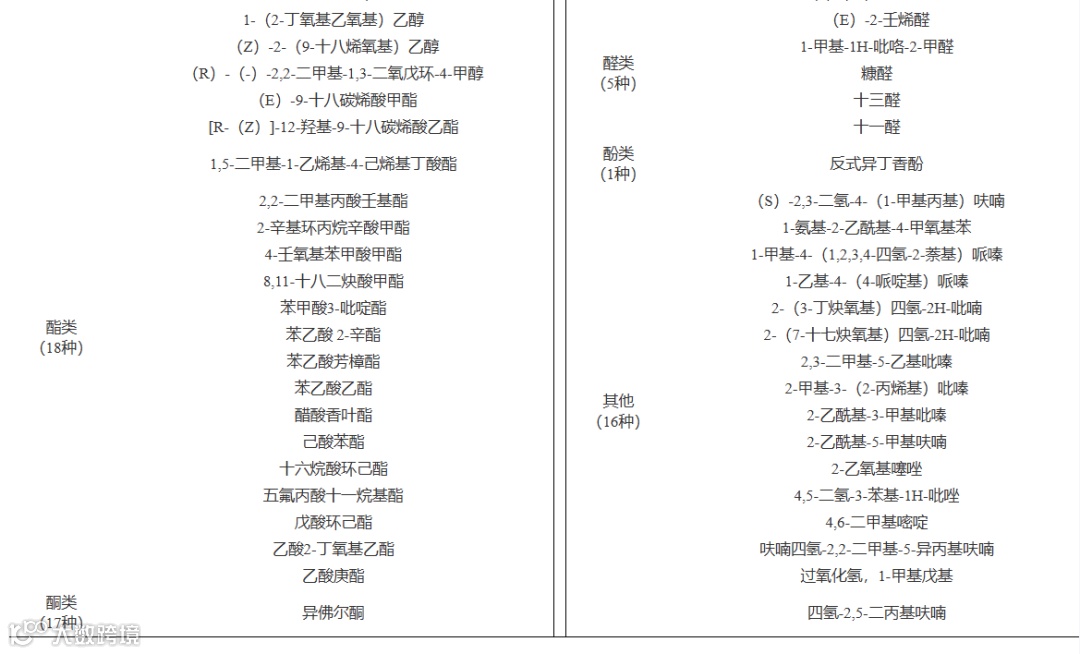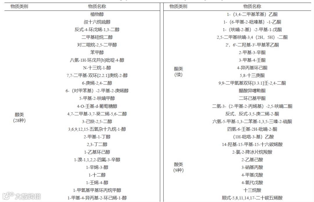 表 12 C组豆酱特有94种物质类别及名称