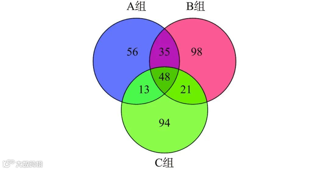 图 6 基于GC-MS三组豆酱的挥发性风味物质venn图