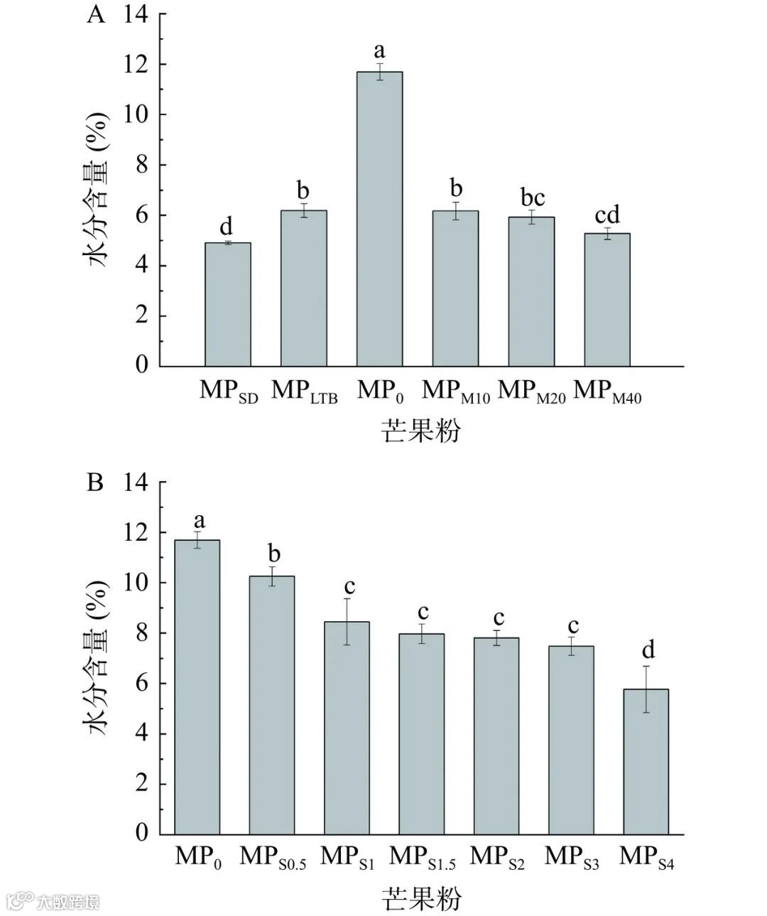 2.1.1 芒果粉的水分含量