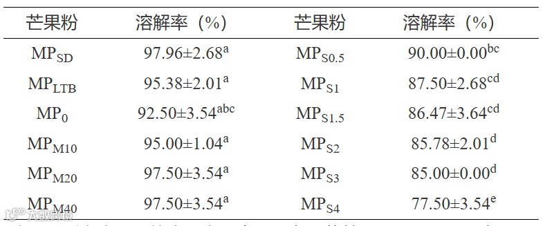2.1.2 芒果粉的溶解率