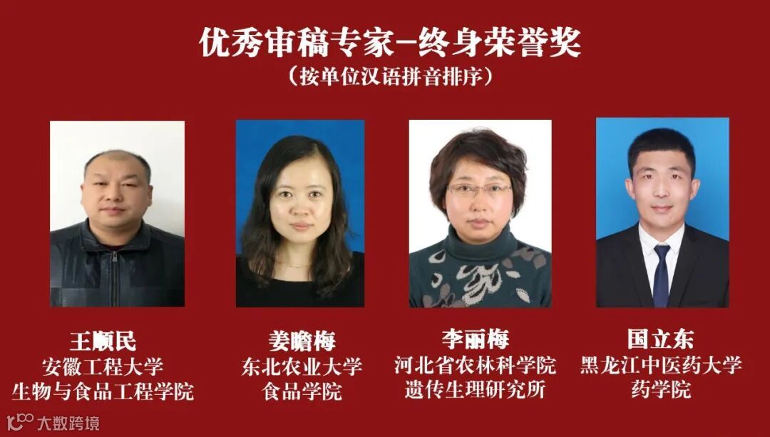 《食品工业科技》历年优秀审稿专家-终身荣誉奖