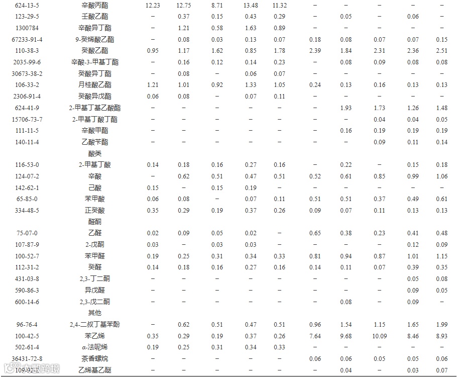 Table 4 Contents of volatile compounds of Aronia melanocarpa compound wine