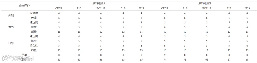Table 5 Sensory scores of Aronia melanocarpa compound wine