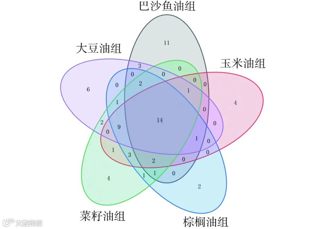 图 4 五组样品挥发性风味物质韦恩图