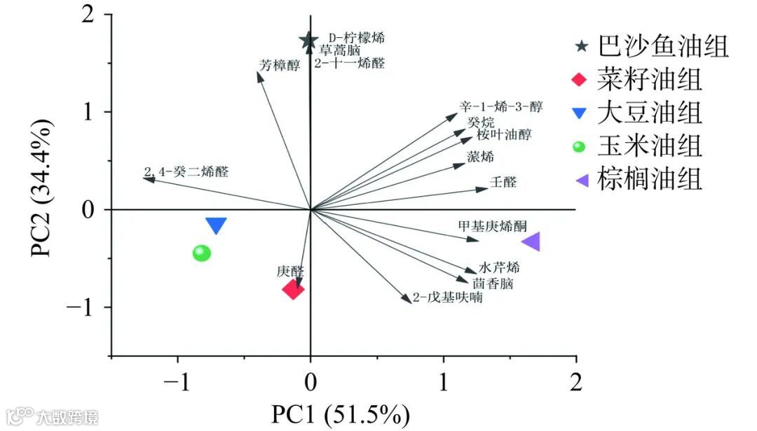 Fig.5 Principal component analysis of five cooking oil fried samples