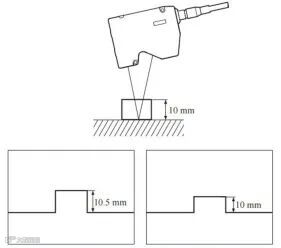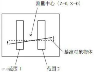 因补正传感头安装、对象物体或对象物体放置台的倾斜引起的Z轴方向的高度误差。在补正前的轮廓区域中,选择已知的高度差的范围,记忆与真值的偏差状况(补正跨距)。