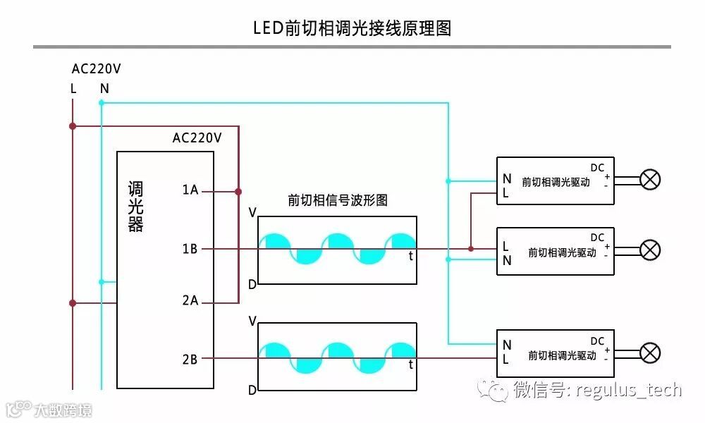 前沿调光就是采用可控硅电路,从交流相位0开始,输入电压斩波,直到可控硅导通时,才有电压输入。其原理是调节交流电每个半波的导通角来改变正弦波形,从而改变交流电流的有效值,以此实现调光的目的。