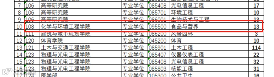 0832(食品科学与工程)、0836(生物工程)、0860(生物与医药)、0955(食品与营养)、0972(食品科学与工程)、095135(食品加工与安全)。 |
