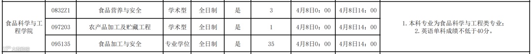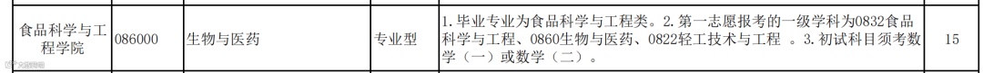 1.本科专业为0827(食品科学与工程类)、0830(生物工程类)优先。 |