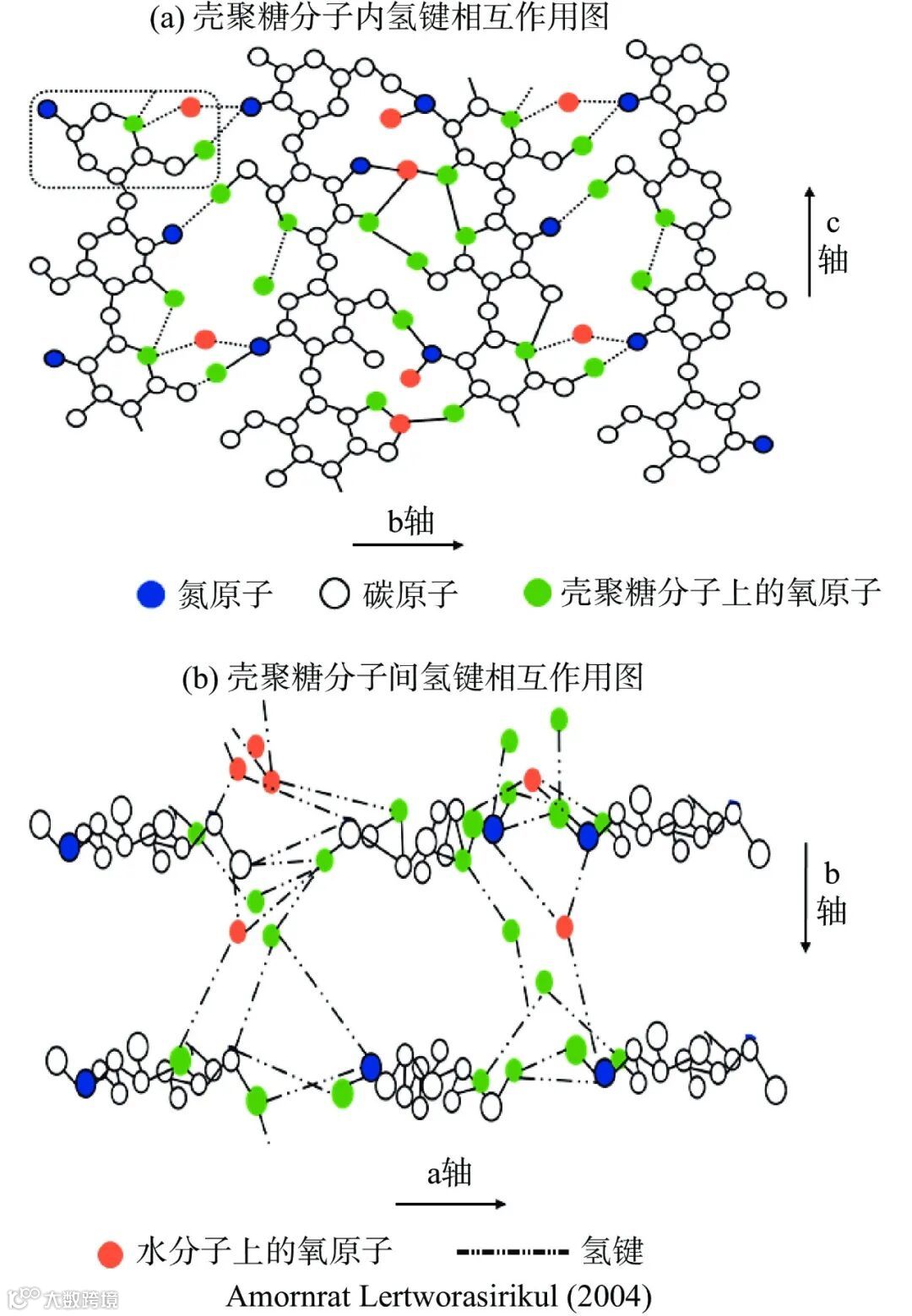 注:a、b分别表示壳聚糖分子内、分子间氢键的相互作用。