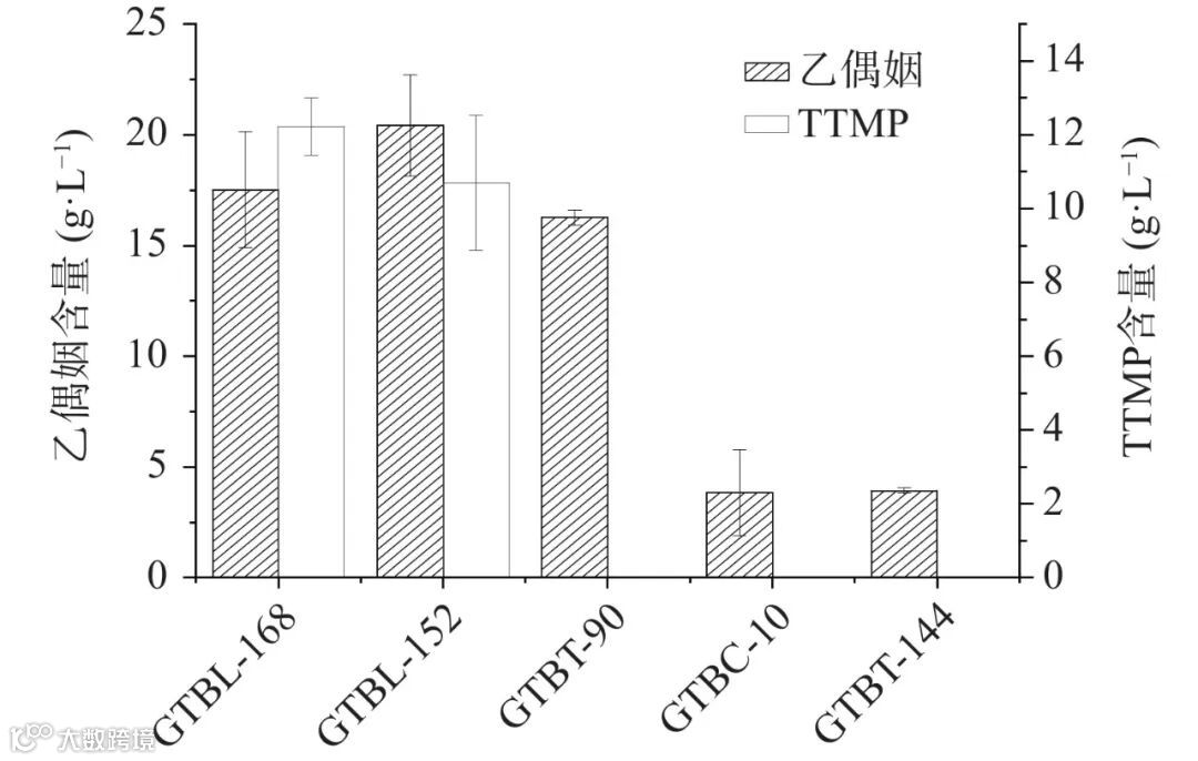 图 1 液态发酵液中乙偶姻、TTMP含量
