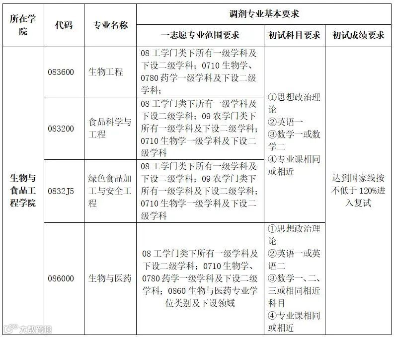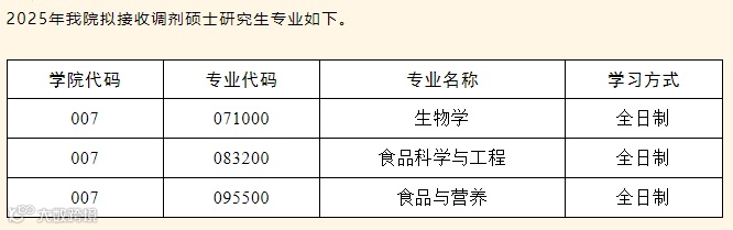 食品与生物学院现有部分全日制学术学位硕士、专业学位硕士调剂名额,请有意向调剂到我院的考生及时关注调剂信息及公告。