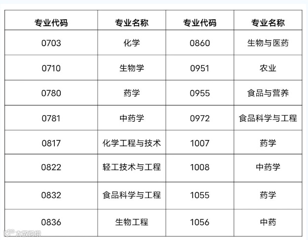 生物与医药可接收的第一志愿报考专业:
