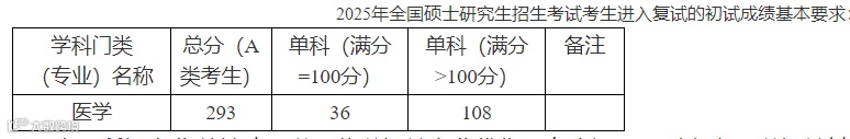 总成绩要求为报考专业对应的《2025年全国硕士研究生招生考试考生进入复试的初试成绩基本要求》中A类考生总分降30分,单科满分100分的科目单科线为30分,超过100分的科目单科线为40分;