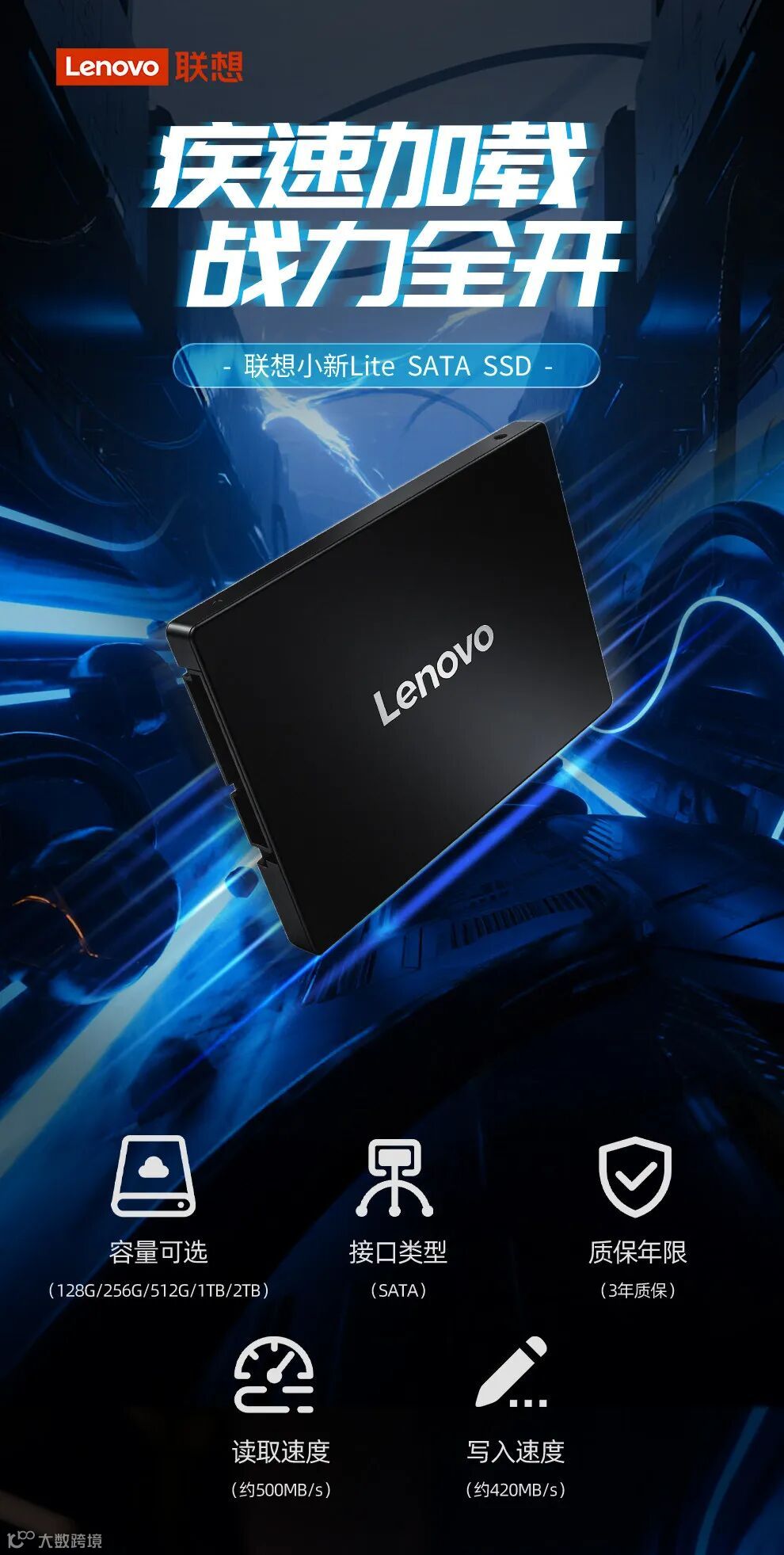 联想小新Lite固态硬盘sata接口ssd台式机电脑笔记本通用固态硬盘128G/256G/512G/1T/2T(80PCS/箱)
