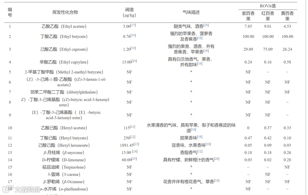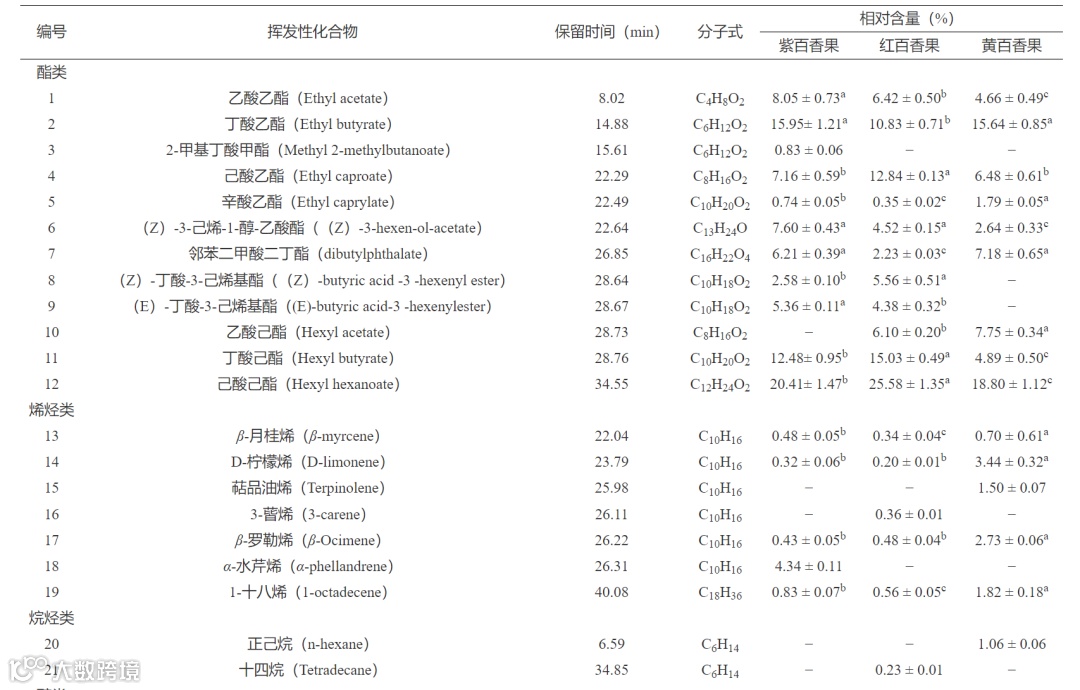 Table 1. Volatile flavor compounds in three passion fruit species
