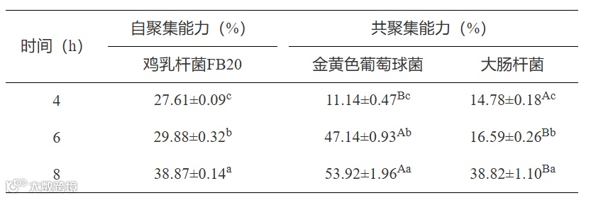 表 5 鸡乳杆菌FB20自聚集、共聚集率