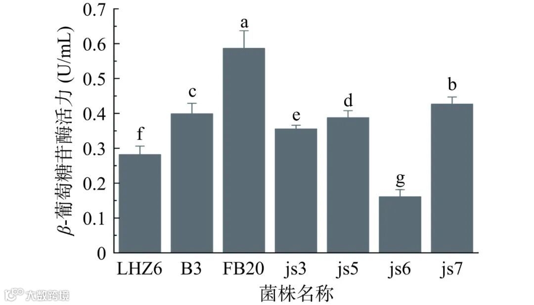 图 1 所分离的乳酸菌产β-葡萄糖苷酶的酶活力