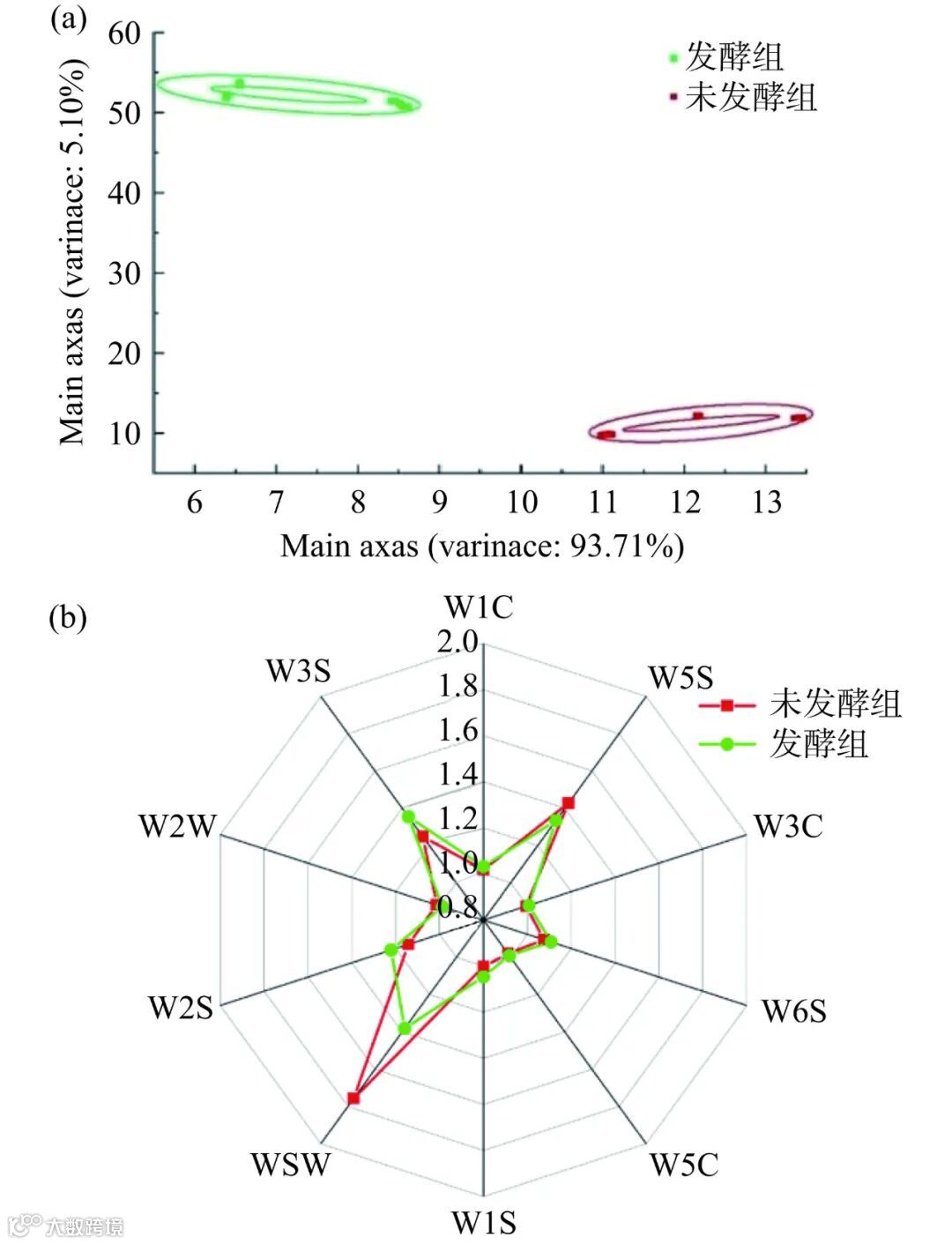 图 6 鸡乳杆菌FB20发酵对红茶汤风味影响的电子鼻分析