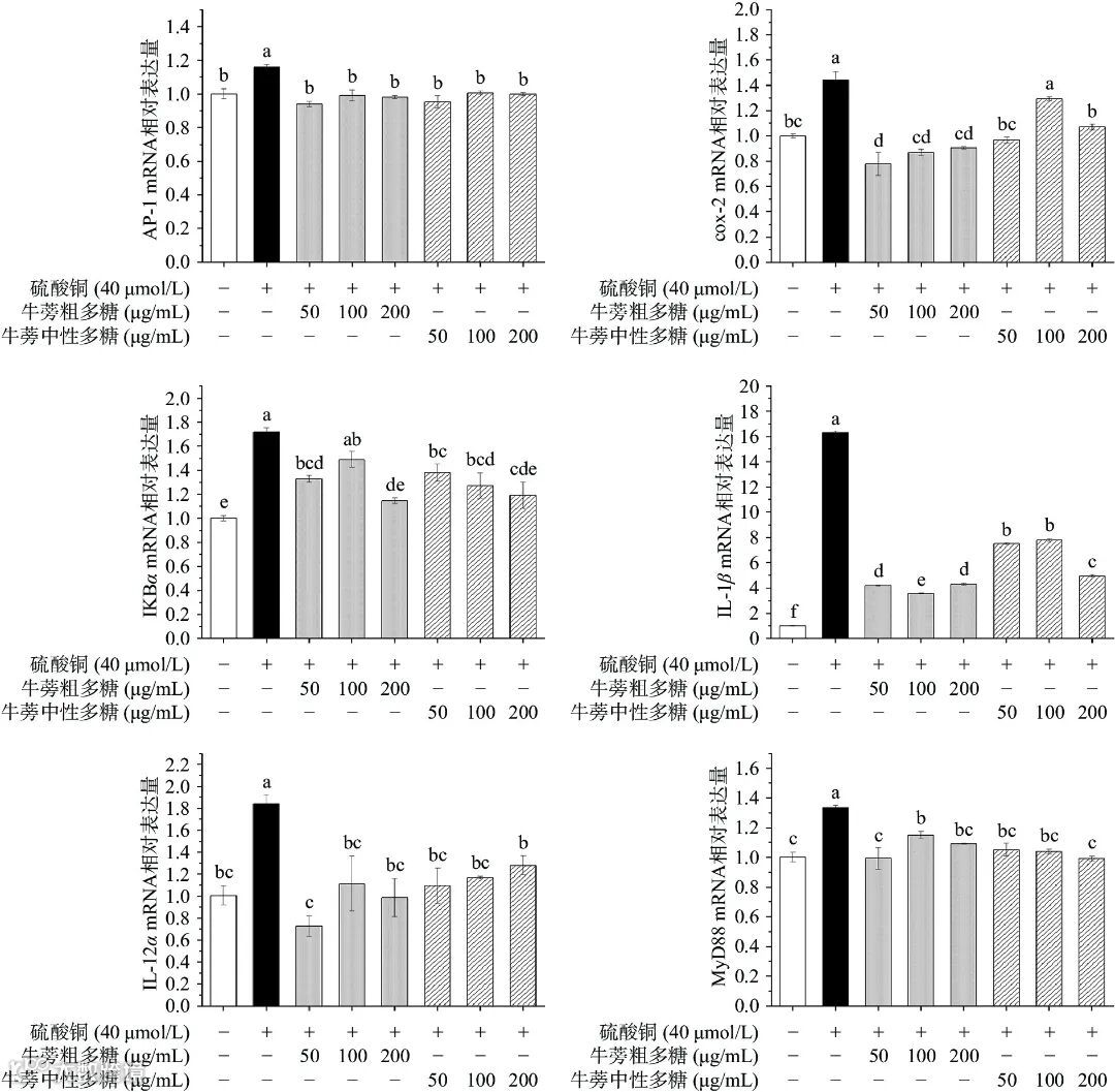 图 12 牛蒡粗多糖及牛蒡中性多糖对 6 种炎症因子表达的影响