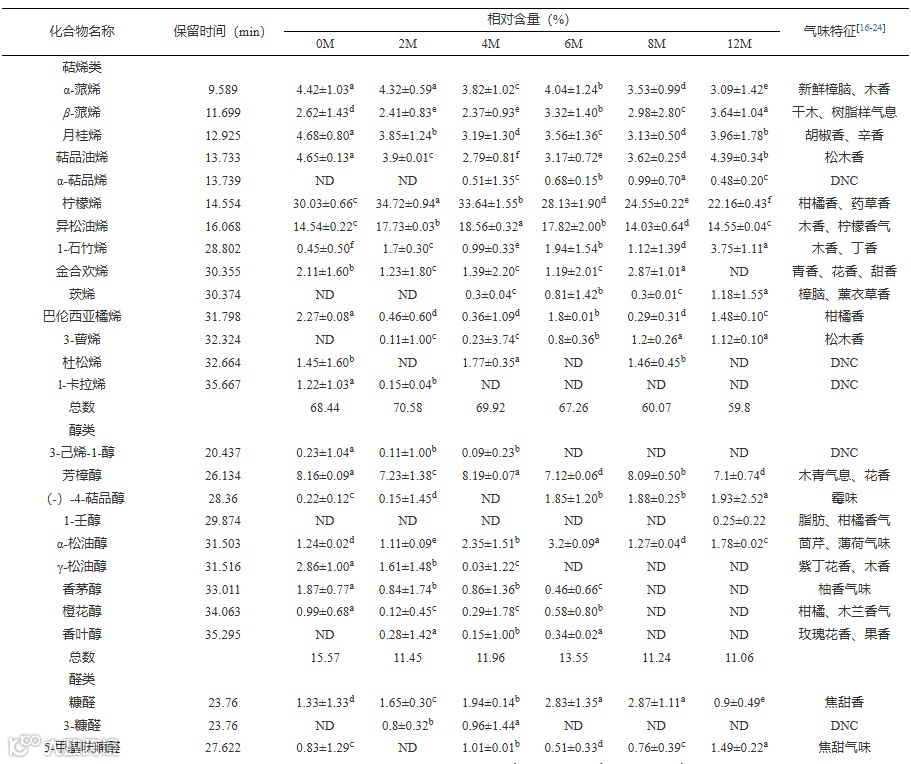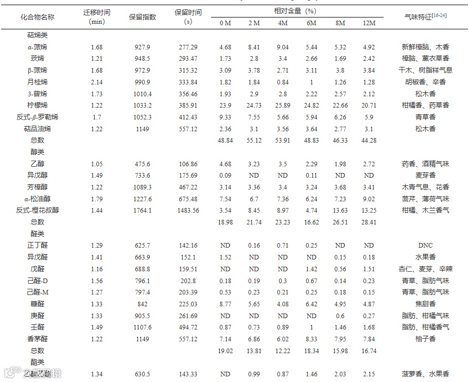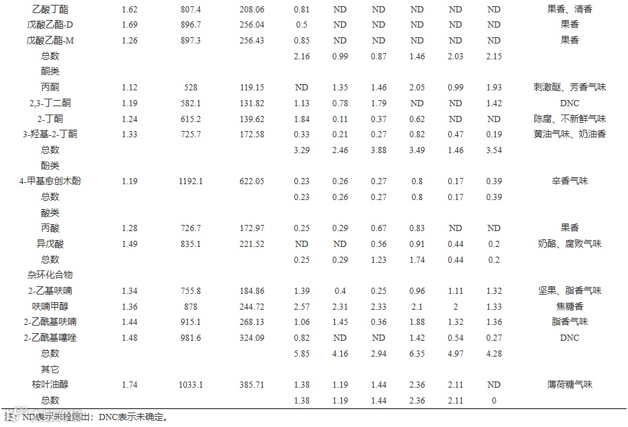 2.2.1 发酵期间老香黄挥发性香气成分的鉴定