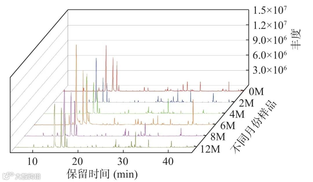 2.2 基于GC-MS分析不同发酵时间的老香黄挥发性成分