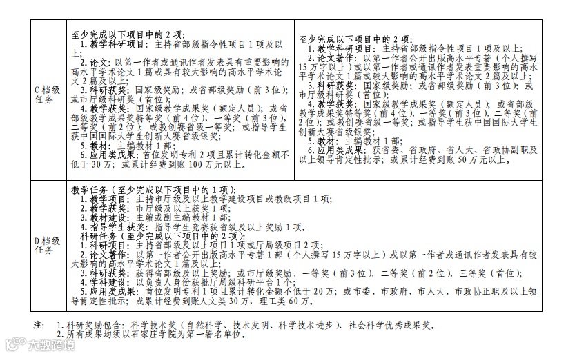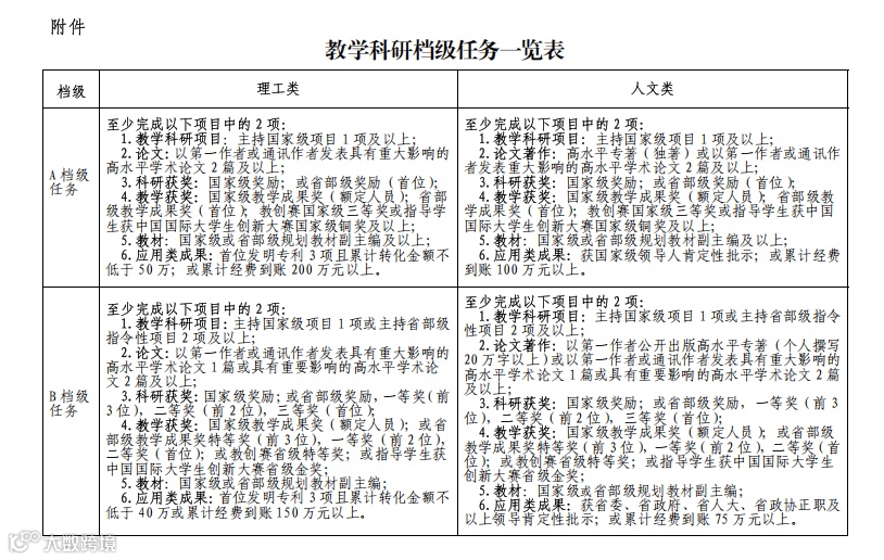 2.档级任务:任务期内引进人才除完成基本任务外,须选择完成教学科研相应档级任务。