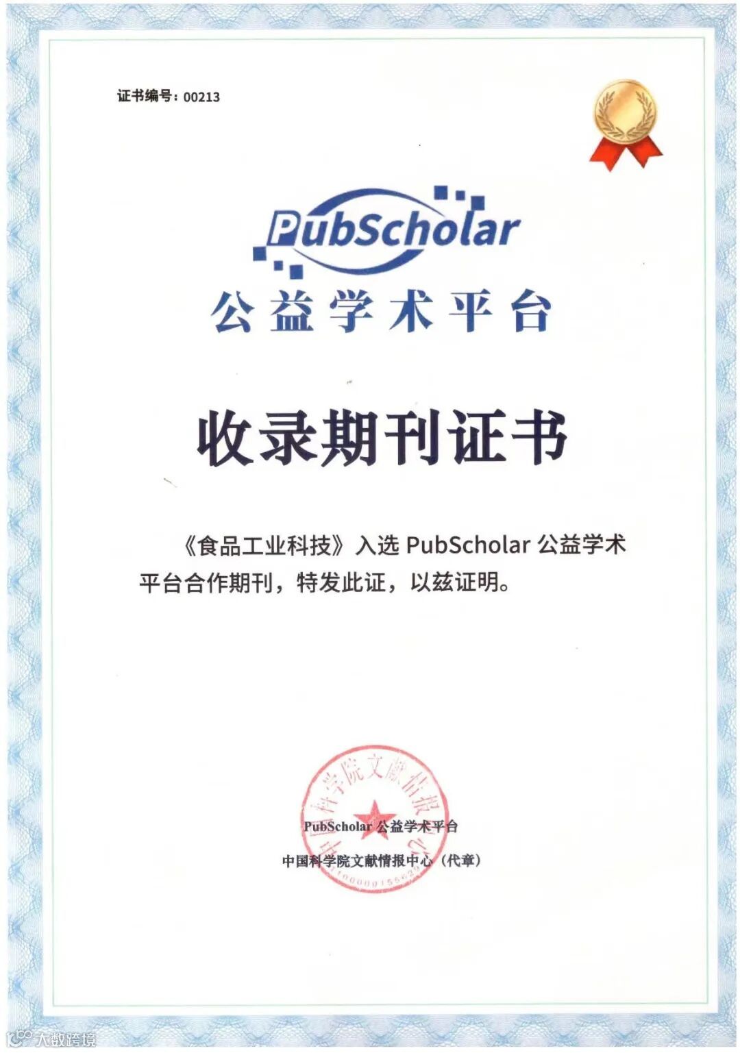 近日,《食品工业科技》入选PubScholar公益学术平台合作期刊,成为其合作的433本期刊之一。