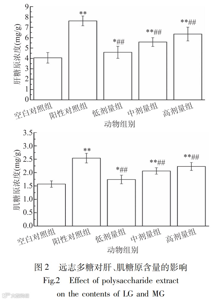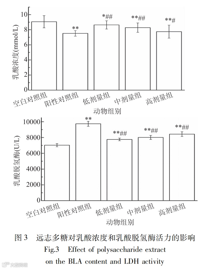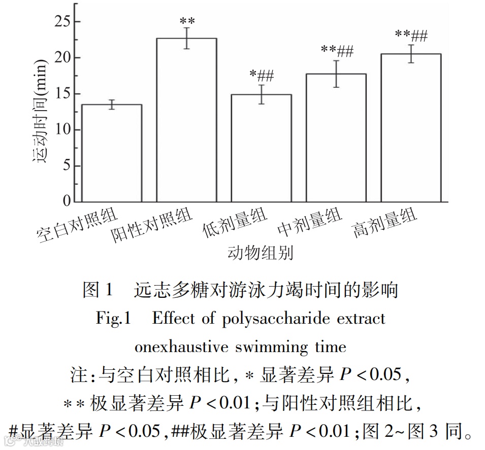 本研究还发现,不同剂量的远志多糖对小鼠的抗疲劳效果存在剂量依赖性关系,即随着剂量的增加,抗疲劳效果逐渐增强。这一发现为进一步优化远志多糖的应用提供了重要参考。此外,研究还提示远志多糖可能作为一种潜在的功能性食品成分,在运动营养领域具有广阔的应用前景。