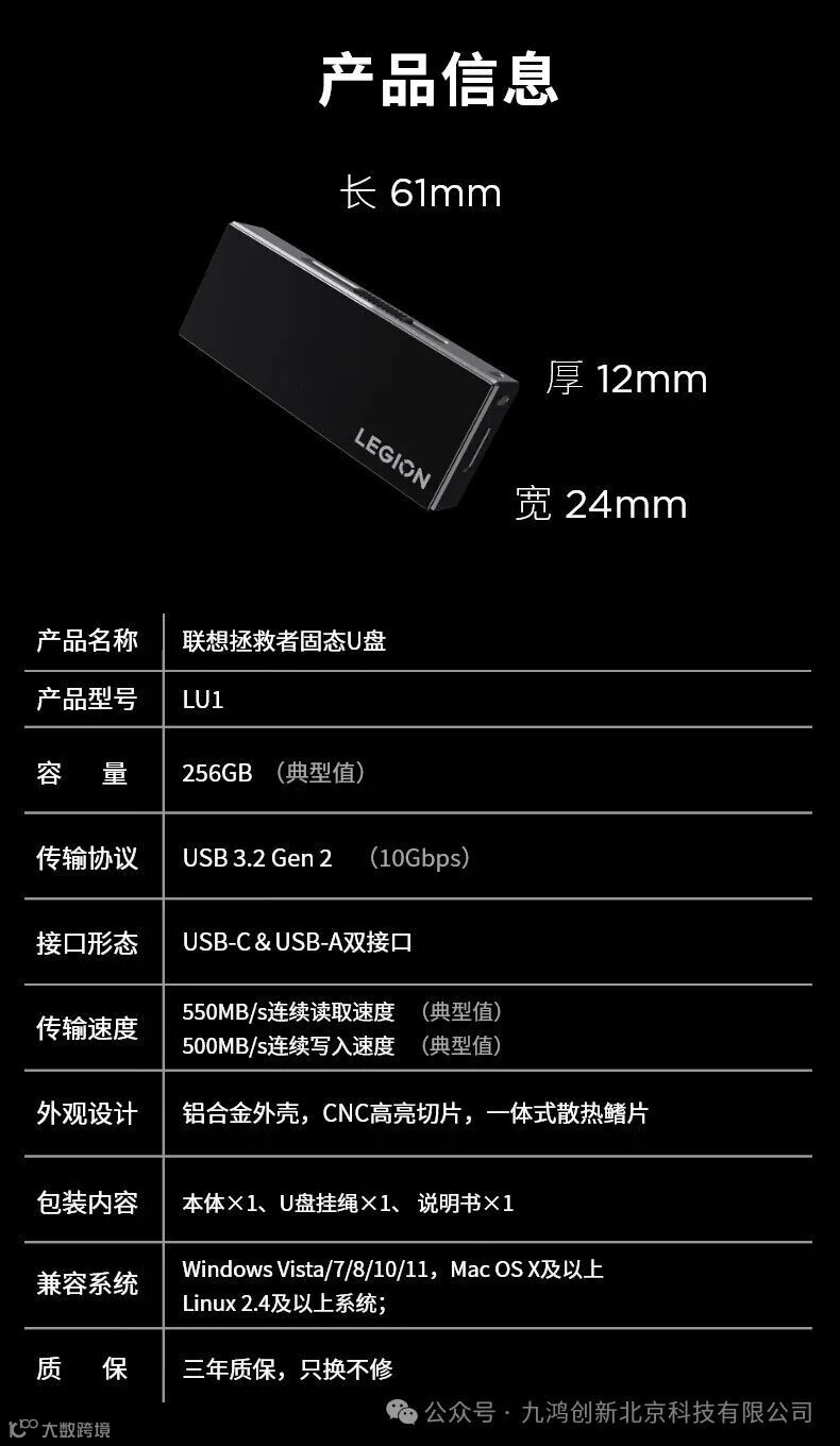 联想拯救者LU1固态U盘 Type-C USB3.2手机U盘电脑优盘双接口移动固态闪存优盘金属机身商务办公U盘 拯救者固态U盘 256GB
