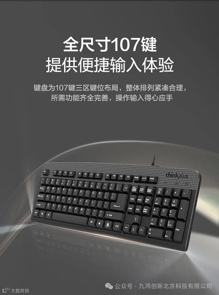 简单好用!经典107键,简约商务黑,激光镭雕键帽,USB有线接口,适用于台式机笔记本电脑!