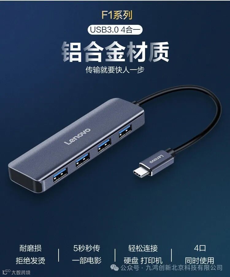 联想拓展坞USB3.0分线器4口HUB集线器笔记本电脑延长线一转四转换器小新拯救者扩展坞 F1-C04(100PCS/箱)